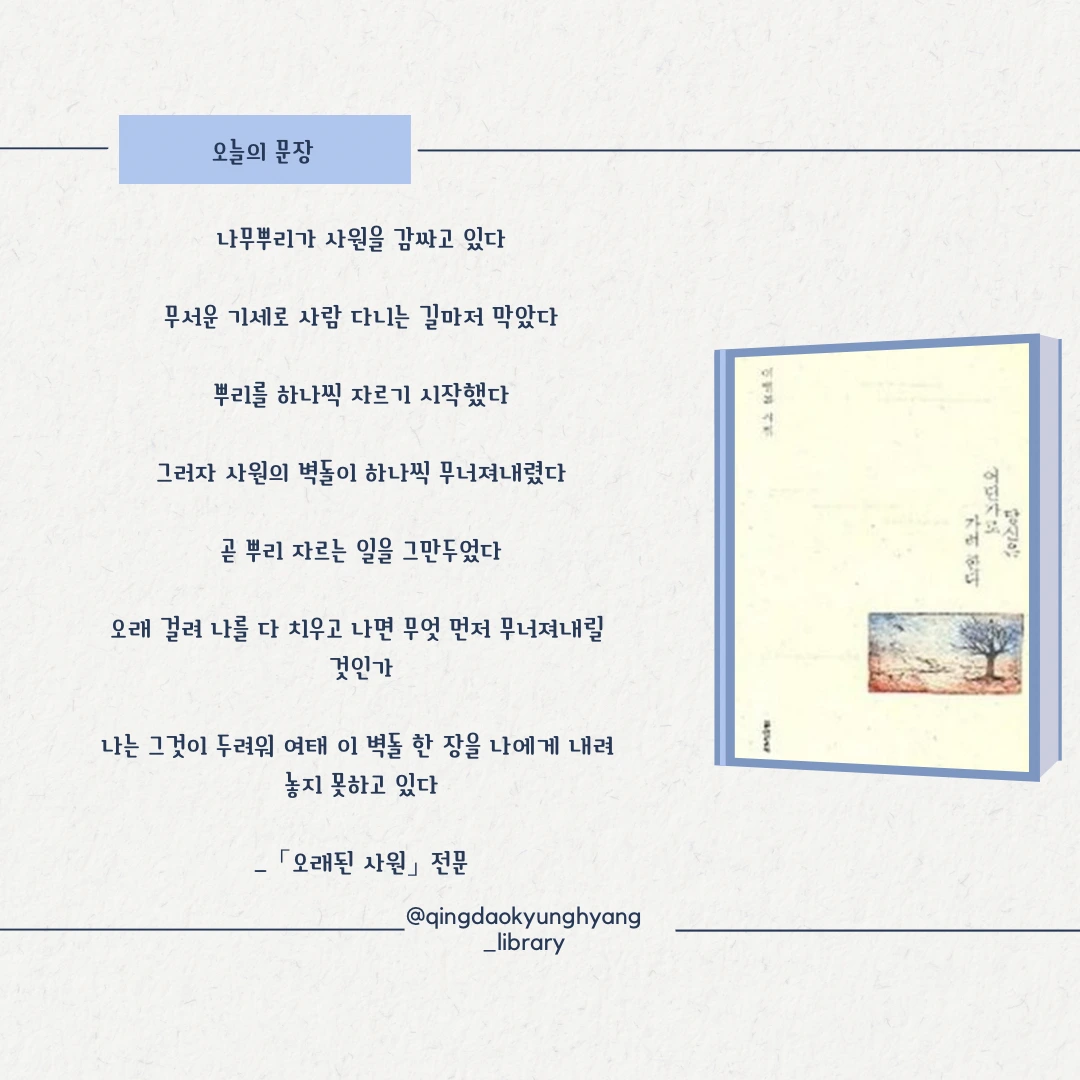 #칭다오 #칭다오청양 #칭다오경향도서관 #오늘의문장 #이병률시집 #이병률시인 #당신은어딘가로가려한다 #문학동네 #문학동네시집
