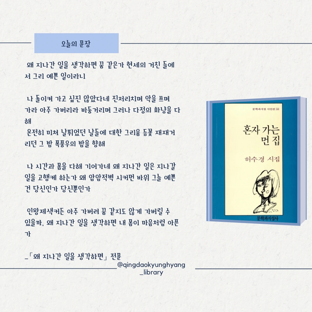 #왜지나간일을생각하면 #문학과지성사 #허수경시인 #문학과지성시인선 #오늘의문장 #칭다오 #칭다오청양 #칭다오경향도서관