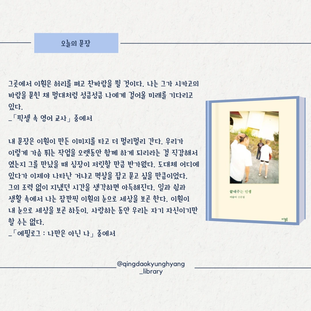#끝내주는인생 #디플롯 #이슬아작가 #이훤시인 #끝내주는결혼 #끝내주는경기 #오늘의문장 #칭다오 #칭다오청양 #칭다오경향도서관