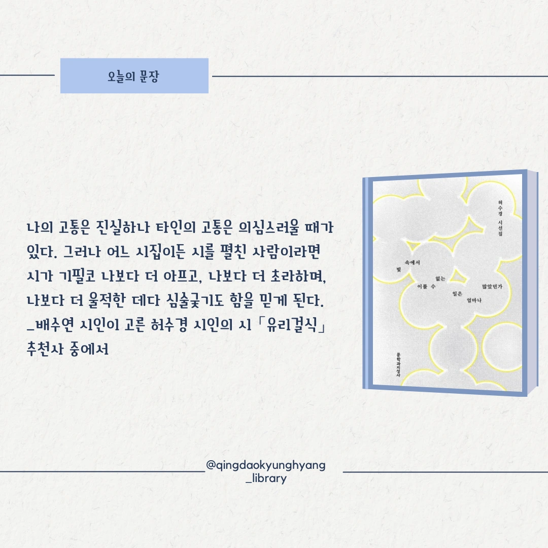 #빛속에서이룰수없는일은얼마나많았던가 #문학과지성사 #허수경시인 #배수연시인 #유리걸식 #오늘의문장 #칭다오 #칭다오청양 #칭다오경향도서관