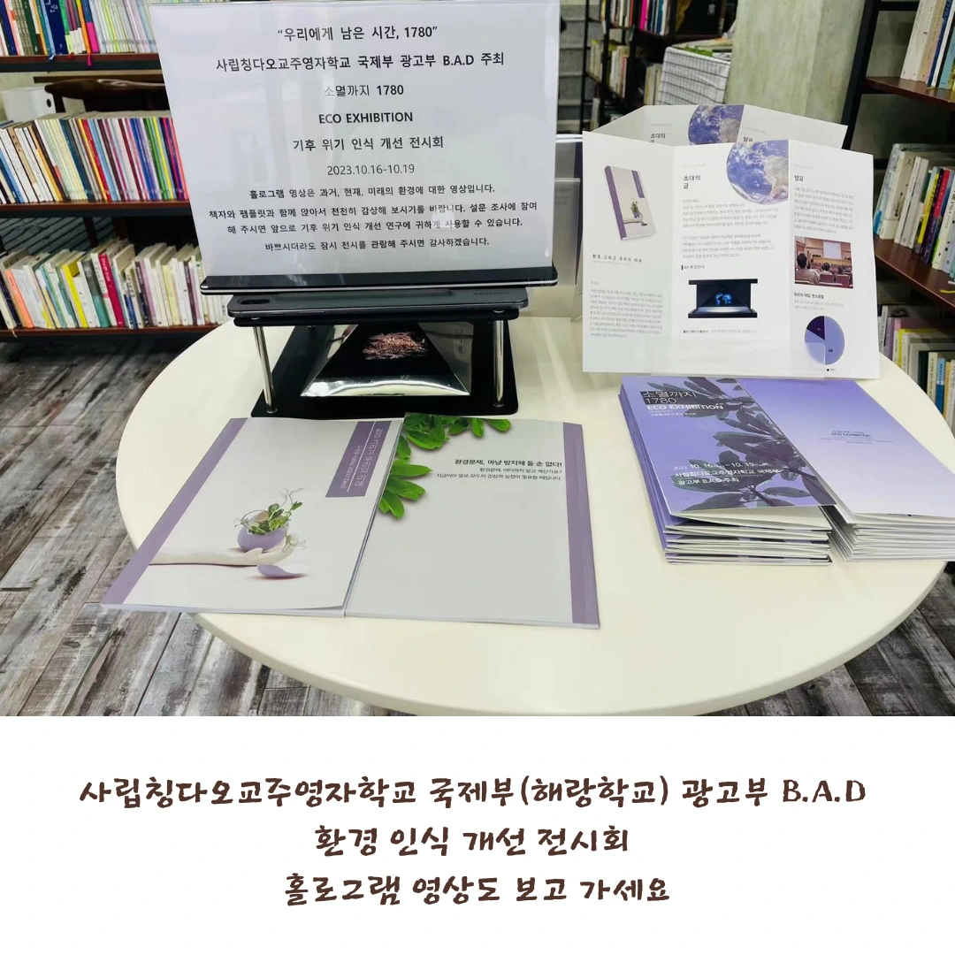 괜찮아졌다는 말을 듣기 위해 필요한 시간은 30분인데, 기다리는 시간이 총 2시간 30분이었습니다. 지친 몸을 이끌고 도서관에 와서 해랑 친구들이 설치하고 간 홀로그램 기계 위에 전시 문구를 올려놓고 홀로그램을 보다가 오전에 했던 생각을 이어서 했습니다. 아니, 일요일 소란 친구들이 도파민 이야기를 꺼냈는데, 그때부터 시작된 생각 같습니다.