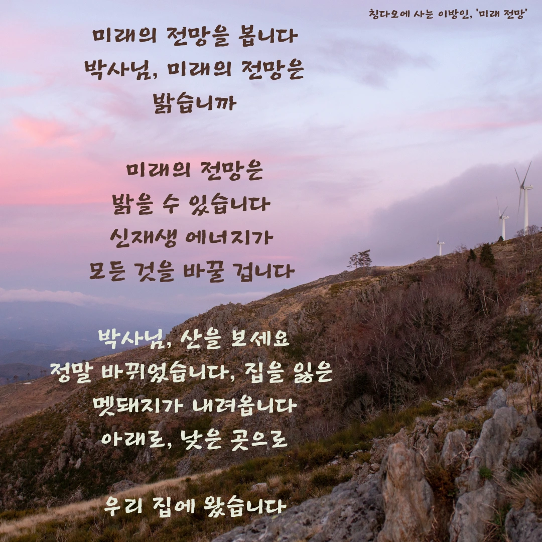 오늘의 질문은 "우리는 지금 어디를 향해 가고 있는 걸까요? 우리는 지금 무엇을 놓치고 있는 걸까요? "입니다.
