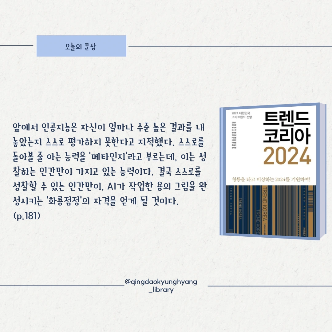 #칭다오 #칭다오청양 #칭다오경향도서관 #오늘의문장 #트렌드코리아2024 #김난도 #트렌드