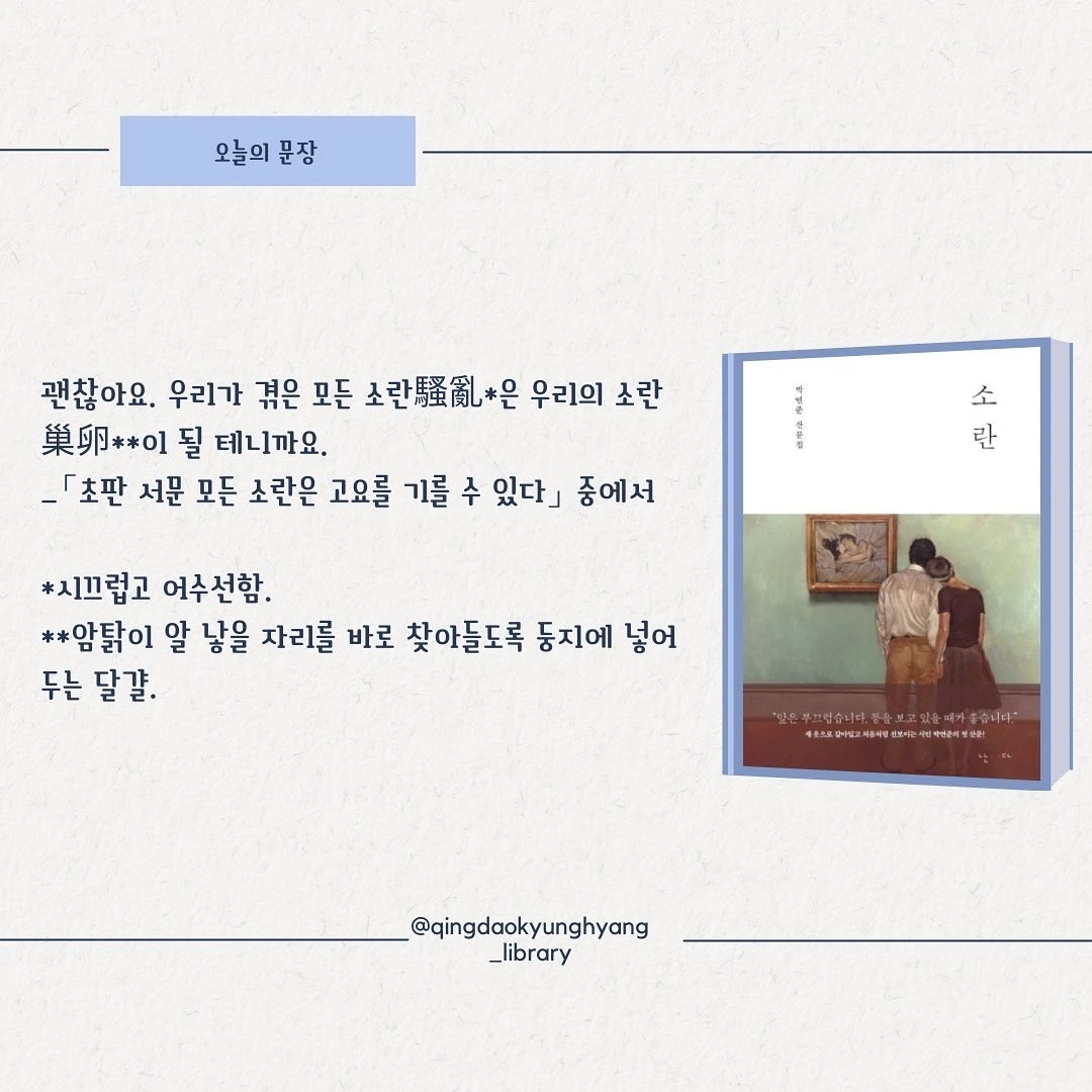 #소란 #박연준시인 #난다출판사#팬데믹 #오늘의문장 #칭다오 #칭다오청양 #칭다오경향도서관