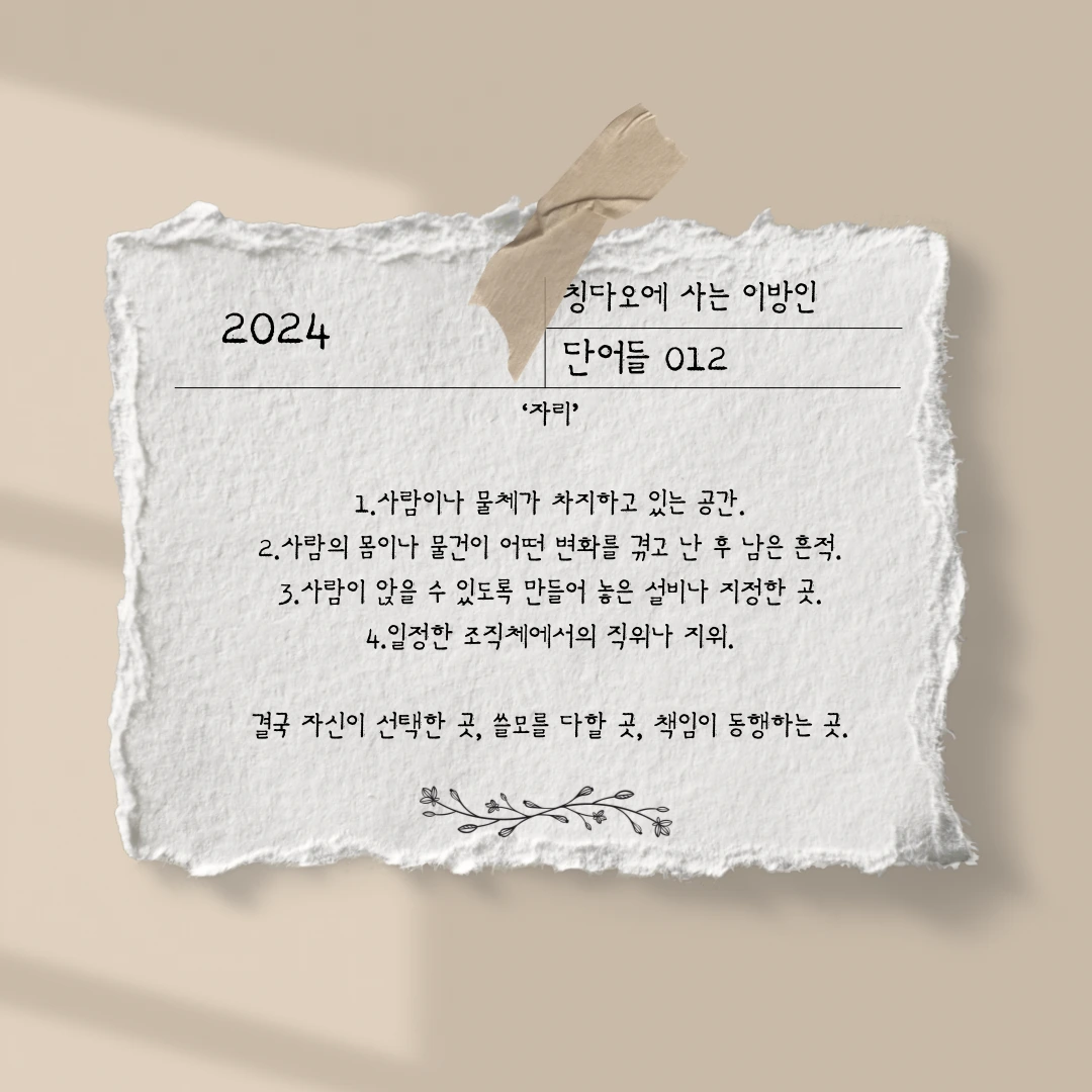 일주일 동안 생각한 단어는 ’자리‘,