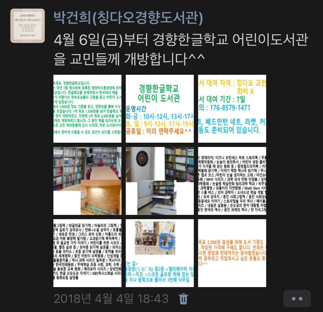 _2018년 4월 4일에 올린 도서관 개관 공지 중에서
