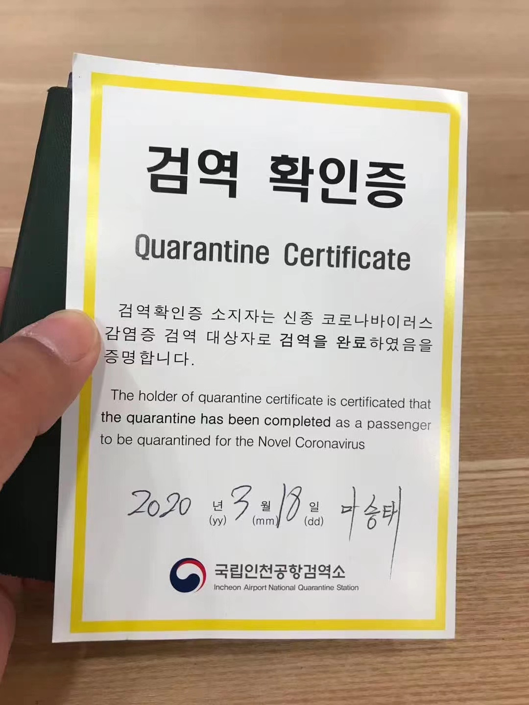숙소는 제주도 성산에 있는 만화가 선생님이 운영하시는 펜션으로 예약했다. 중국에서 갈 거라는 사실을 사전에 말씀드렸고, 검역 확인증까지 잘 받아서 숙소에 들어갔다. 사실 검역 확인증은 '검역을 완료'했음을 알리는 증명서이다. 이런 증명서가 있었지만, 여전히 우리는 누군가에게 이름도 생소한 펜대믹, 두려움의 대상이었다. 이러한 사실을 깨닫게 되는 데는 오랜 시간이 걸리지 않았다.