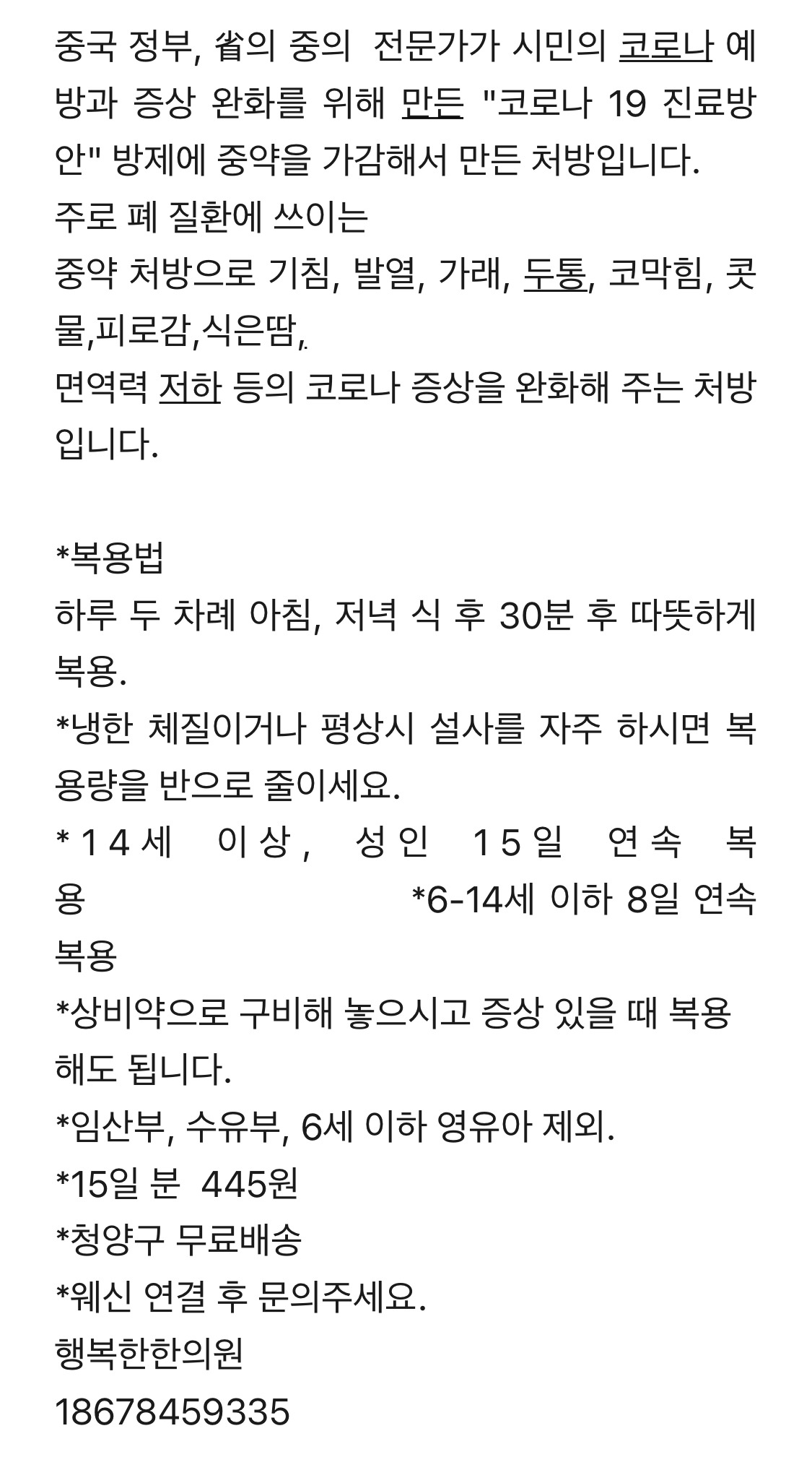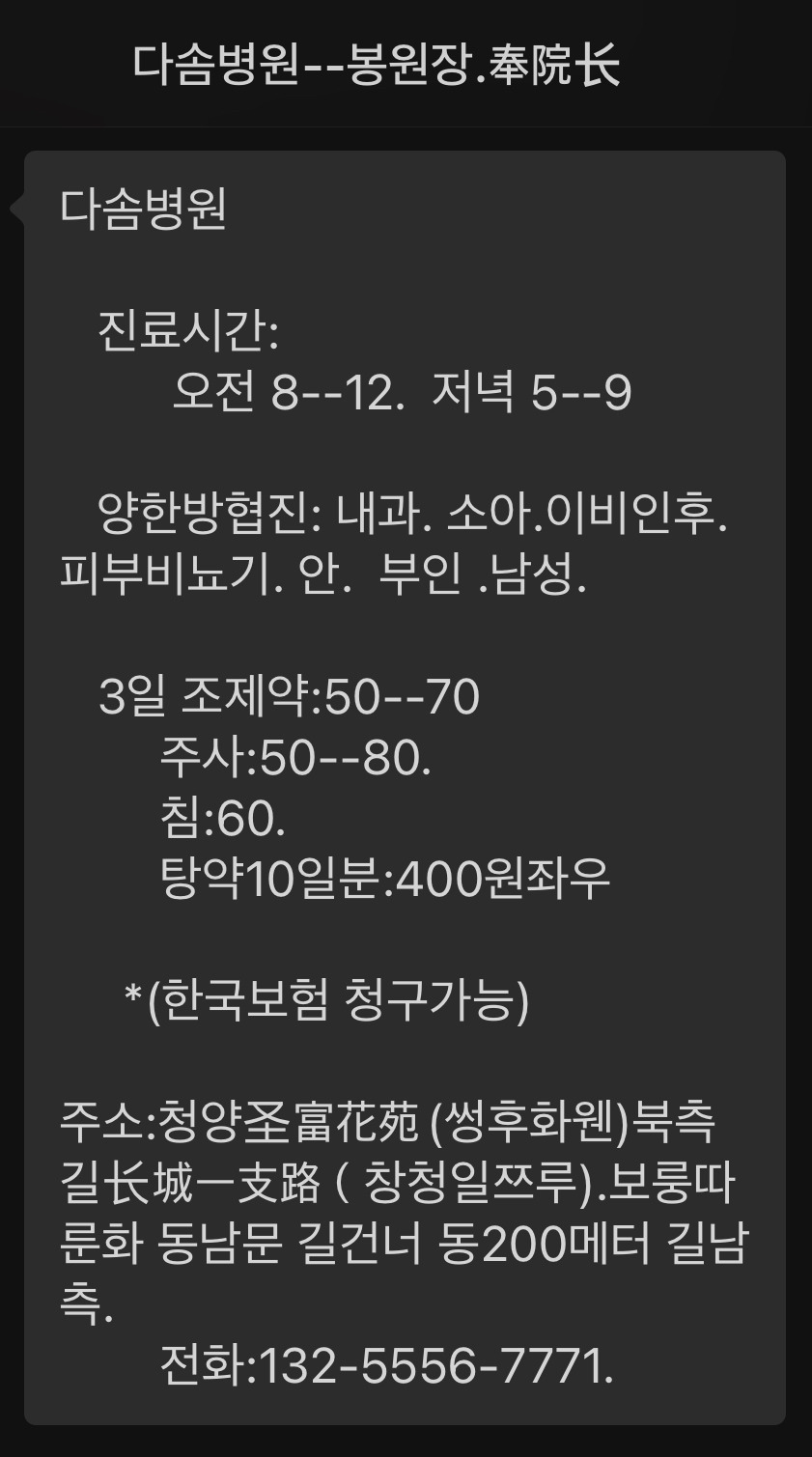 관리실에 연락했더니 지금 병원에 가면 사람이 너무 많아서 진료도 못 본다고 집에서 버티라고 한다. 현재 나를 관리하는 인원은 없고, 안 나갈 거지만 난 언제든지 나갈 수 있다. 타인도 마찬가지겠지. 오전에 연락 돌릴 때만 해도 “독감보단 약한 거 같아요.”라고 했는데, 오후가 되니 점점 열이 오르고 몸을 주체하기 힘들어졌다. 주변 분들 덕분에 양약과 충돌이 일어나지 않는 한약과 교포 선생님이 운영하시는 병원에서 처방약을 구할 수 있었다. 지금은 사실상 약 구하기가 하늘에 별 따기다.