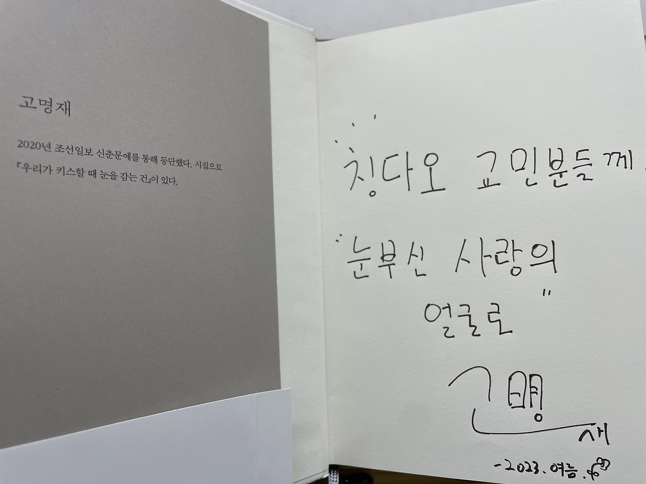 #고명재시인 #너무보고플땐눈이온다 #난다출판사 #오늘의질문 #삶 #칭다오 #칭다오청양 #칭다오경향도서관
