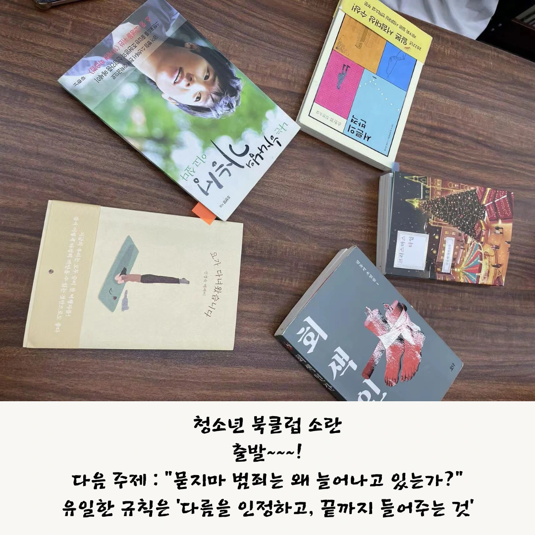 청소년 북클럽 소란이 오랜만에 모였고, 그동안의 근황과 책 이야기를 나눴습니다.
