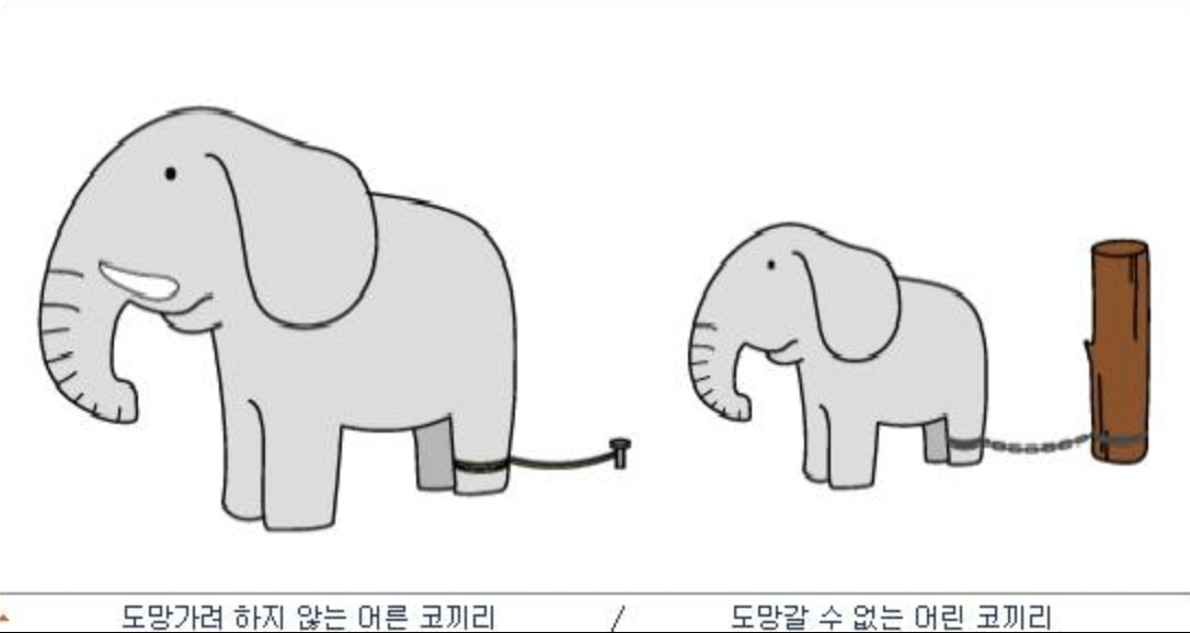 그럼에도 자전거를 두려워하는 내 자신이 마치 서커스에서 코끼리를 잘 다루려고 어릴 때 부터 한 쪽 다리를 말뚝에 묶어놓는다는 스토리가 생각났다. 시간이 지나서 코끼리는 성장해 말뚝 따윈 뽑아버릴 수 있는 힘을 가졌음에도 할 수 없다고 생각해 시도조차 하지 않고 계속 묶여있는 것이다.