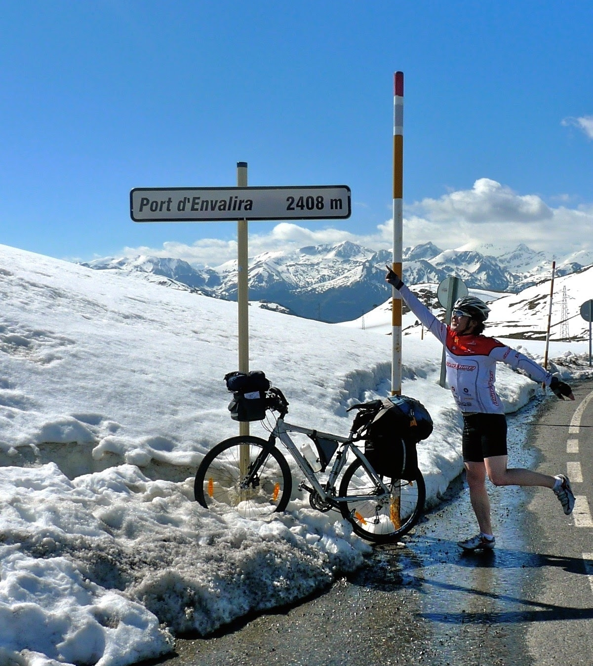 당시 꼬박 9시간을 넘게 자전거로 오르막길을 타고 올라야 했다. 결국 고갯마루의 정상에 섰다. 5월 말쯤이었는데도 눈이 제법 남아있었다. 좀 우스꽝스러운 포즈이지만 꽤나 감격스러운 마음으로 남긴 사진이다.