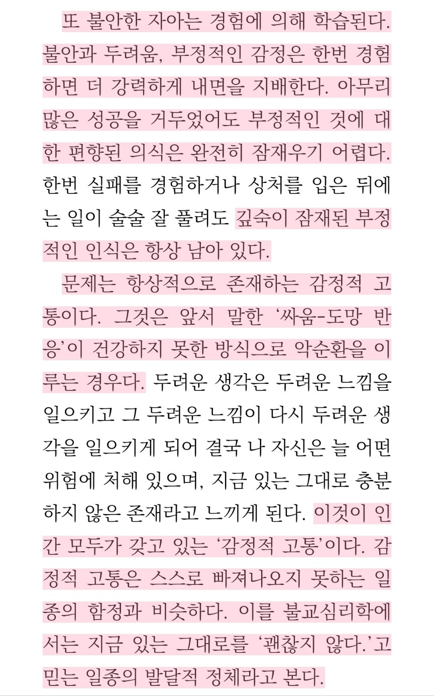 위의 서적에서는 이러한 인간이 가지고 있을 수 밖에 없는 근본적인 고통들에 대해 이야기 합니다. 그 내용을 다 옮길 수도 없고 주목할 내용이 워낙 많아서 몇가지 내용을 캡쳐한 것으로 소개를 대신합니다.(문제시 삭제하겠습니다)