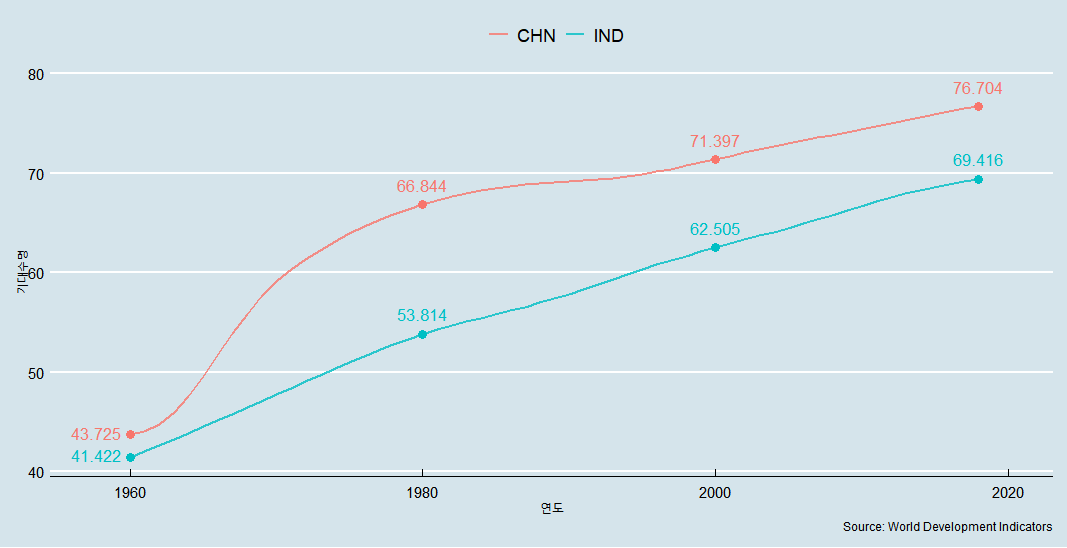 정치 체제가 단기간에 벌어지는 재난 위기에 대한 대응에서 차이를 만들어냈다면, 평상시의 건강 격차를 만들어낸 차이는, 두 나라가 채택한 사회 정책에 있었다. 센과 드레즈는 중국이 비슷한 출발선에서 시작해 인도를 크게 앞지른 요인으로 식량의 공적 조달, 공적 보건 의료, 교육을 지목했다(Drèze & Sen, 1991). 인도에 비해 식량, 의료, 교육 등의 공공성이 매우 높았던 것이다.