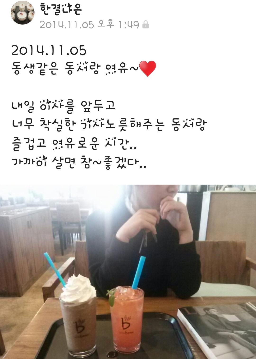 "형님은 우리 친언니보다 더 편해요." 어느 타이밍인지 기억이 가물가물하지만 진심이 아니었을지 몰라도 친언니도 친동생도 없는 나에게는 친언니. 친동생 이상의 존재인 동서이다.