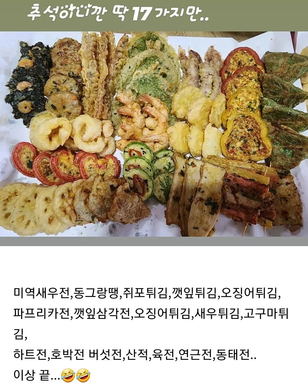 오늘 준비한 설맞이 전&튀김 17종