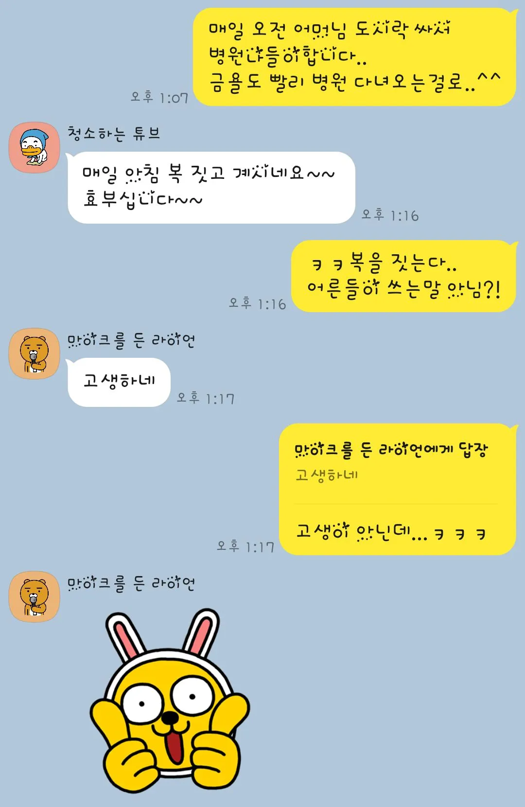 역시 고생의 의미를 찾아보았다. '어렵고 고된 일을 겪음. 또는 그런 일이나 생활'을 의미하였다. 어머님이 드실 도시락을 싸는 거는 어려운 일도 고된 일도 아니고, 누가 억지로 시킨 일도 아니기에 전혀 힘들지 않았다.