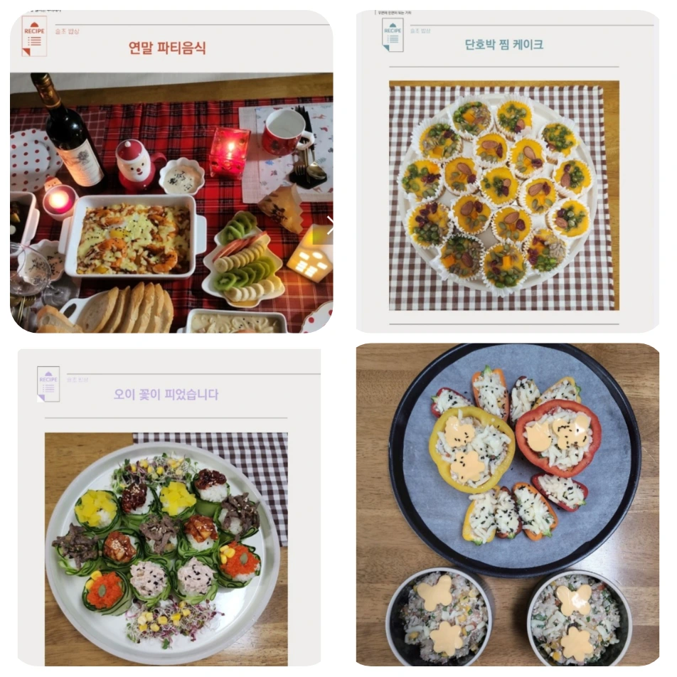 직접 요리한 슬초밥상 메뉴들