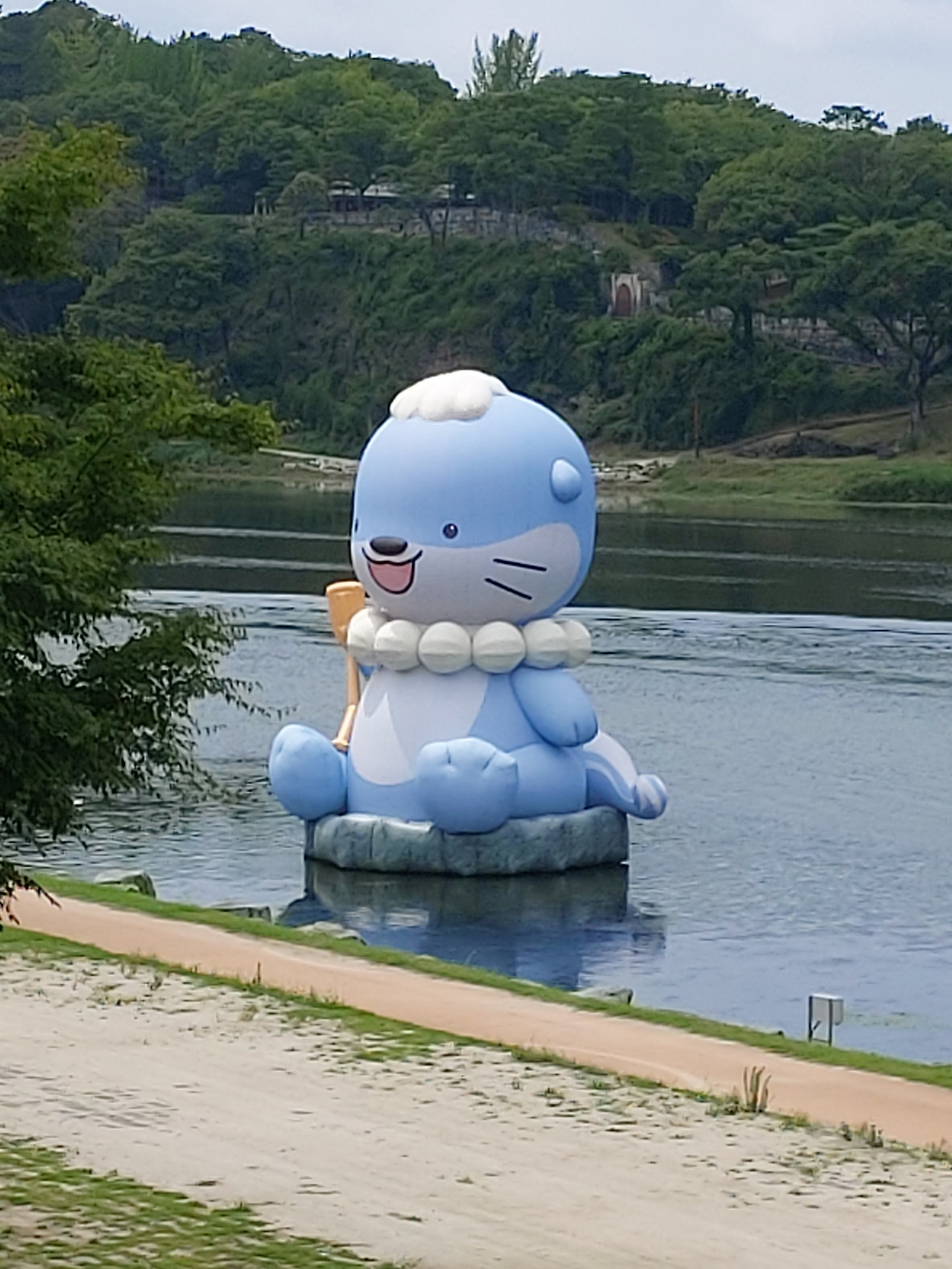 진주하면 기존에 떠 오르는 이미지는 진주 남강, 촉석루, 논개 정도였다. 이번에 진주 여행을 하면서 가장 많이 본 캐릭터는 하모였다. 진주 남강에 사는 수달을 형상화 한 캐릭터라는데, 목에 진주 목걸이를 두르고 손에 꼭 전 뒤집게 처럼 생긴 노를 들고 있는 귀여운 동물 모양이다. 진주 남강에 큰 하모 캐릭터가 물에 떠 있었다. 강가에서도 보았지만, 김시민 호라는 진주 남강 유람선을 타고 가면서 더 가까이서 관찰해 보았다. 진짜 동물 수달의 모습에 가깝기보다는 만화 캐릭터에 가까워 보였는데, 귀엽고 밝은 이미지를 주고 있었다. 하모는 동의, 긍정의 의미를 담은 진주 방언이라고 한다. 고민이 있는 사람들에게 희망의 메시지를 전달하여 용기를 북돋아주는 캐릭터라고 한다.