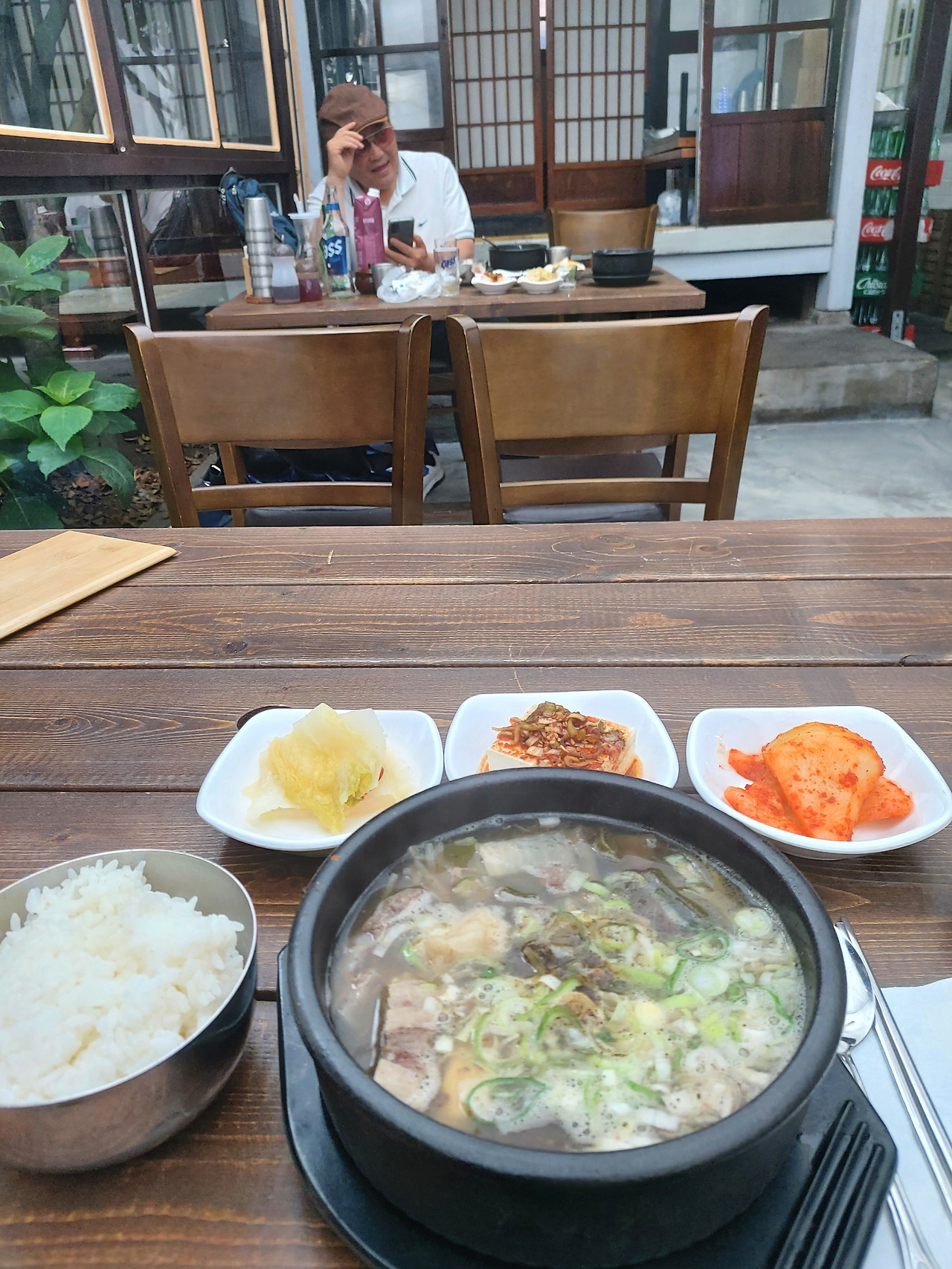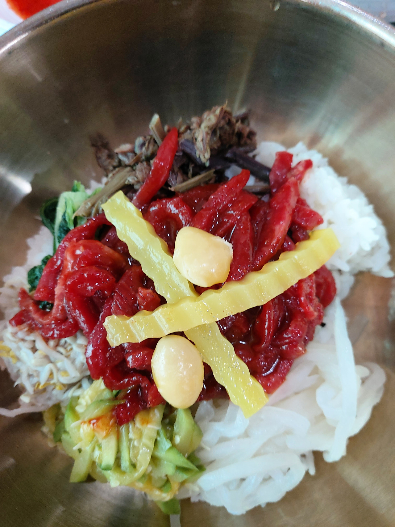 그다음으로 진주비빔밥을 먹으러 갔다. 일반적으로 전주비빔밥이 전국적으로 많이 알려져 있다. 진주비빔밥은 같은 듯 다름 점이 좀 있다. 고명으로 육회를 사용하고, 경상도식 선짓국이 곁들여 나온다. 비빔밥의 모양이 꽃처럼 화려하다고 하여 칠보화반으로 불린다고도 한다.