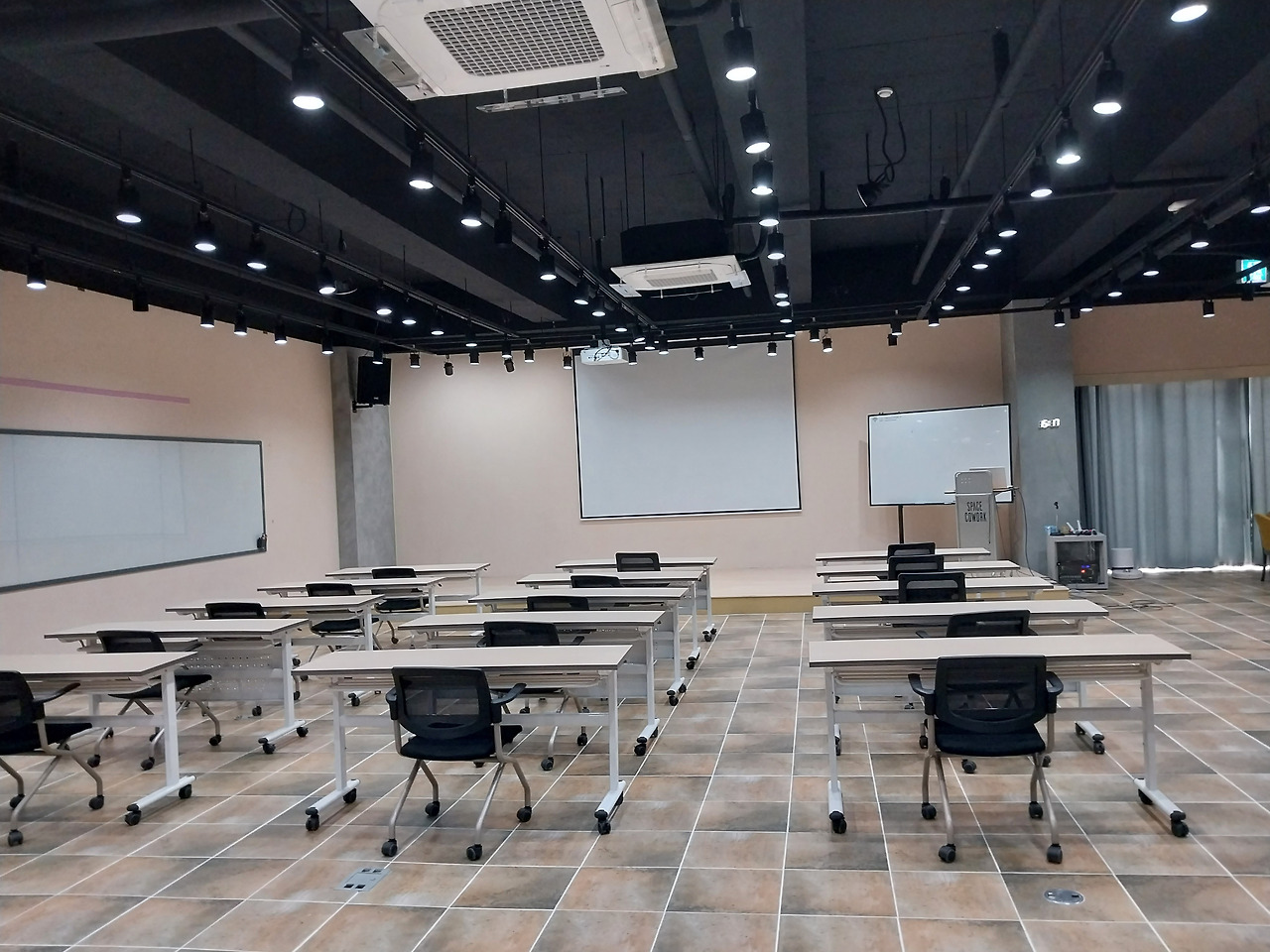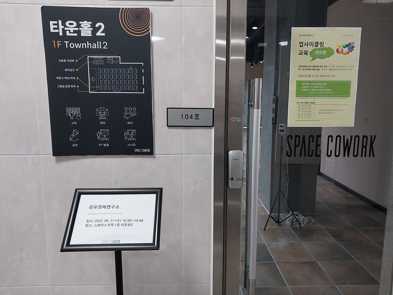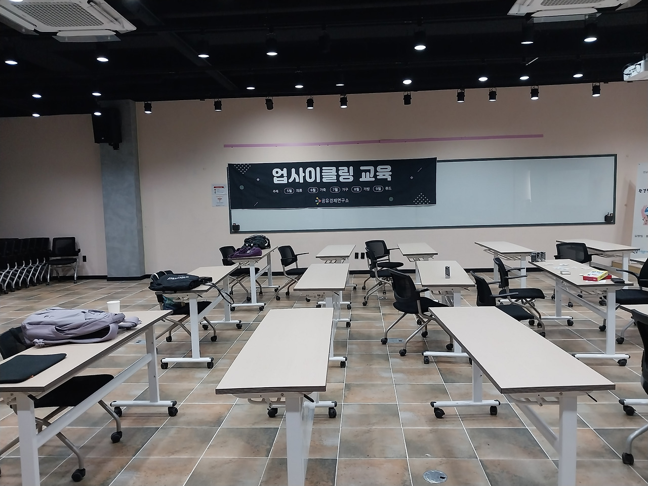 지금까지 업사이클링 교육을 스페이스코웍이라는 공유오피스 교육장에서 진행하였다. 이번 푸드 업사이클링 교육은 조리도구와 개수대가 갖추어진 장소에서 해야 하는지 싶어, 파티룸을 포함한 대여 공간을 찾아보았다. 근처에 파티룸이 있었는데, 식탁이랑 그릇, 개수대, 휴게 공간까지 잘 갖추어져 있었다. 푸드 체험 실습을 하기에 좋아 보였지만, 이론 교육을 하기에는 책상 배치와 빔 프로젝트 위치 등이 잘 맞지 않았다.