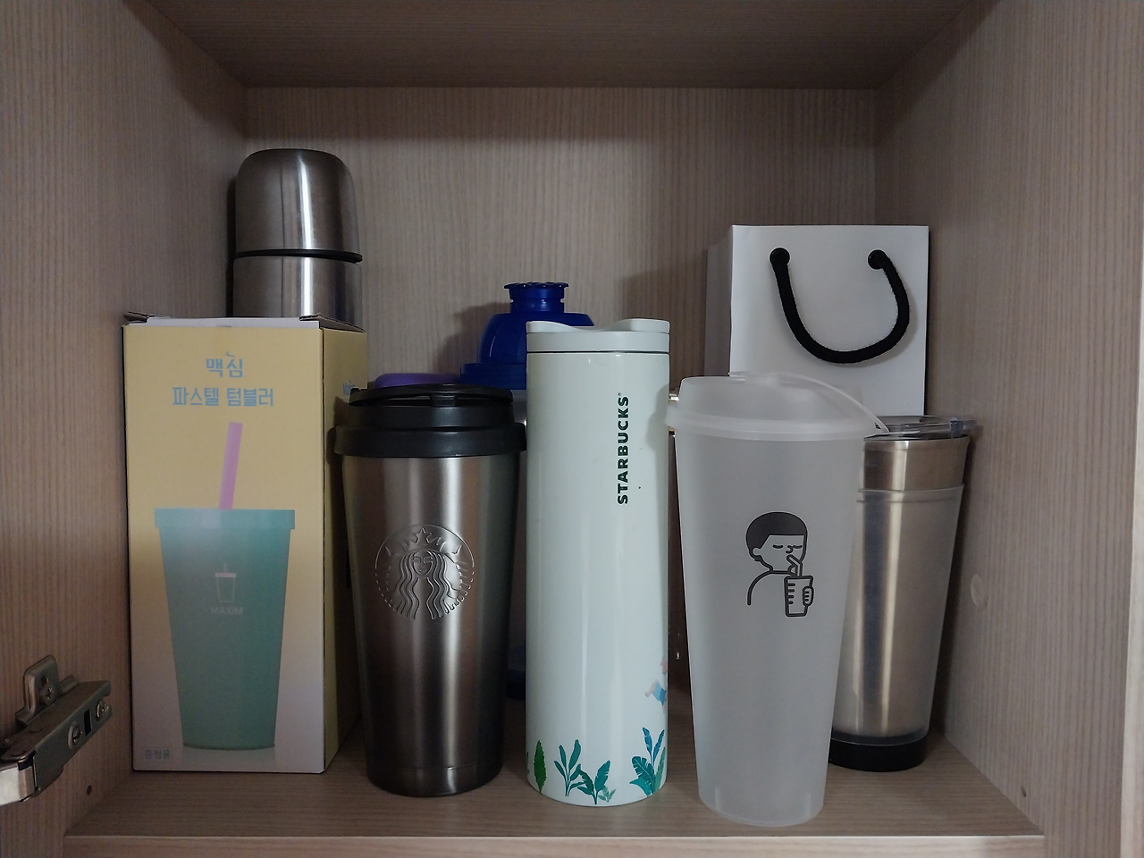 어느 날 스타벅스에 팀원과 같이 갔는데, 주문이 엄청 밀려 있다고 직원이 음료 나오는데 시간이 많이 걸릴 것 같다고 이야기해 주었다. 매장 안을 보니까 평소 보다 사람들이 엄청 많이 있고 대기줄도 길었다. 리유저블컵(다회용 컵) 증정 이벤트를 한다고 해서 사람들이 많이 몰린 거였다. 시간 여유도 있고 해서 디저트도 먹으면서 음료를 기다리고 있다가 다회용 컵을 하나씩 받아 왔다.