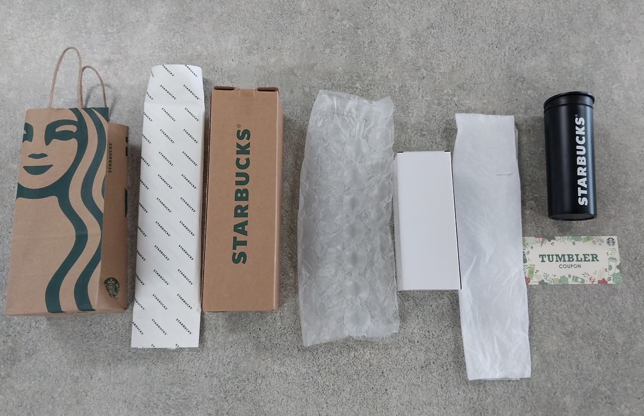 얼마 전에 스타벅스 텀블러를 하나 선물로 받았다. 그런데 포장을 뜯다 보니까 본 제품인 텀블러가 나오기 전까지 종이 쇼핑백, 종이 포장지, 큰 종이 박스, 비닐 완충재, 작은 종이 박스, 얇은 종이까지 대여섯 가지 포장재가 나왔다. 텀블러는 강철로 만든 거라서 깨질 염려도 없어 보이는데, 왜 이렇게까지 완충재를 넣고 포장지에 싸고 또 싸서 풀기만 어렵고, 불필요한 쓰레기만 잔뜩 만드는지 모르겠다는 생각이 들었다. 그냥 스타벅스 로고만 예쁘게 인쇄된 종이 박스 하나 정도만 해도 포장이 충분할 것 같아 보였다.