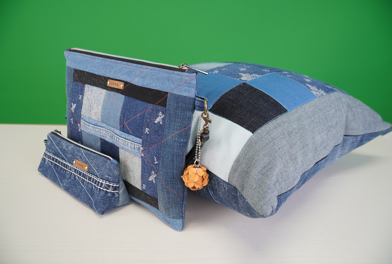 청바지류의 데님 원단은 어떤 아이템으로 업사이클링하여도 멋스럽고 실용적인 소재이다. 청바지로 간단한 가방을 만들 수도 있고, 다양한 소품들을 만들 수도 있다.