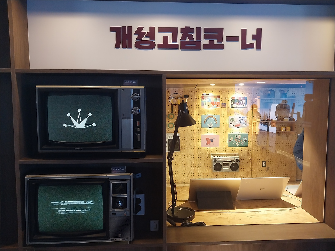 스타벅스 경동1960점 입구에 있는 LG전자의 금성전파사 새로고침센터는 첨단 가전제품들을 레트로한 디자인과 감성으로 체험할 수 있도록 하고 있다. 보기에는 오래된 가전제품처럼 보이지만 사실은 최신기술 전시체험장이다.