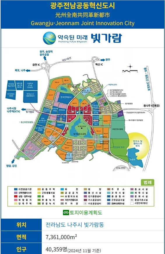 나주혁신도시는 공공기관의 지방이전으로 안정된 일자리와 좋은 주거환경을 갖춘 혁신도시로 설계되었다. "혁신도시"라 함은 이전공공기관을 수용하여 기업ㆍ 대학ㆍ 연구소ㆍ공공기관 등의 기관이 서로 긴밀하게 협력할 수 있는 혁신여건과 수준 높은 주거ㆍ 교육ㆍ 문화 등의 정주 환경을 갖추도록 개발하는 미래형 도시를 말한다.(정의 : 혁신도시 조성 및 발전에 관한 특별법 제2조)