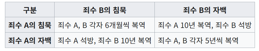 둘 모두 죄를 자백하지 않으면 둘 모두 6개월을 복역한다.