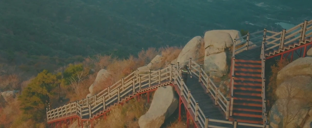 tvN 드라마 '미지의 서울'의 등장인물 '호수'는 어린 시절 교통사고로 반신을 거의 자유롭게 사용하지 못하게 되었다. 과격한 운동이나 등산, 너무 오래 걷는 것도 금물이며 '현 상태를 유지하는 게 최선'이라는 진단을 받은 이후 많은 것들을 포기한 체 살아왔다. 하지만 고등학생 시절 학교 행사였던 '두손봉 등반'이 있던 날, 꺼져가던 호수의 인생에는 반전의 등불이 켜졌고, 그 불은 계단을 오르고 올라 겨우 도착한 정상에서 만난 미지(박보영 분)의 환한 미소처럼 호수의 앞날을 환하게 비춰주었다.