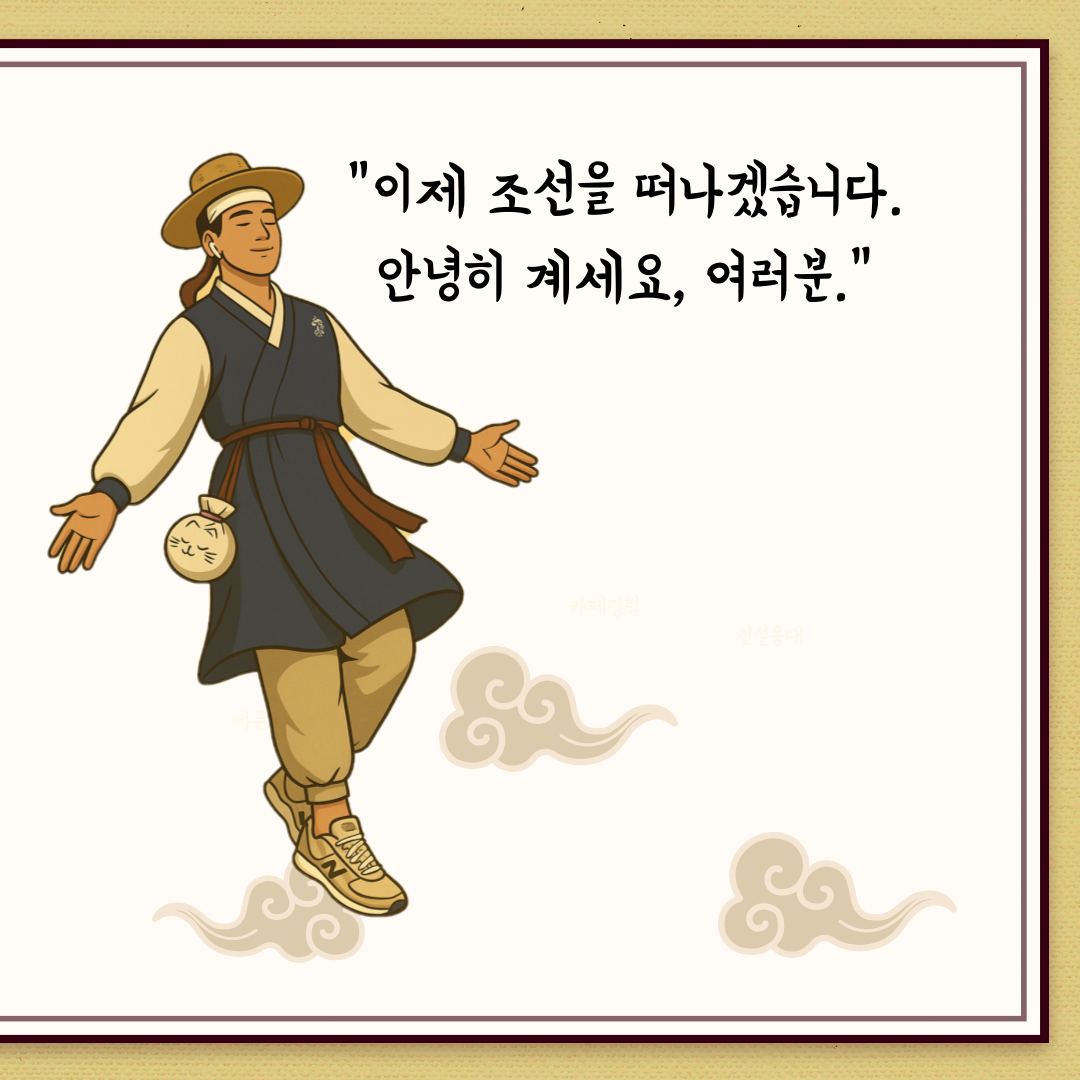 그날, 나는 문턱까지 걸어간 뒤 모두가 보는 앞에서 하늘로 솟아올랐어. 그토록 날 얽매던 조선을 떠나, 내가 처음으로 나를 구한 날이었어.