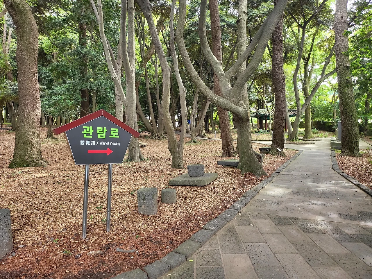 길을 따라 삼성혈의 신화가 새겨져 있고, 제주에 유배 와서 많은 사람들에게 학문을 전수해 주신 오현의 시도 감상할 수 있어.
