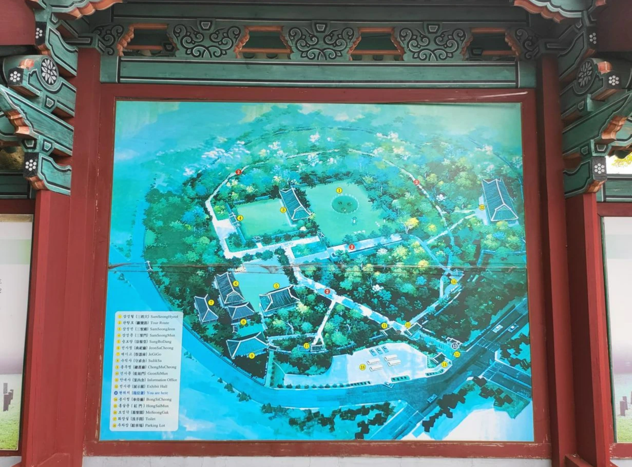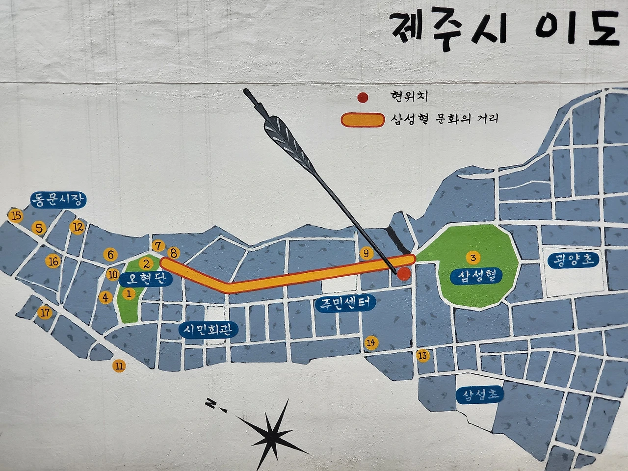 삼성혈을 몇 바퀴 휘휘 돌았어.