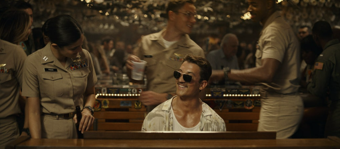 1편이 떠오르는 여러 가지 장면들과 분위기들에 취해 있을 무렵 30여 년 전 해군 최신 전투기였던 F-14기도 날아올랐다. 열정적인 훈련과 젊은이들의 꿈과 희망도 여전히 그곳에 있었고, 황금빛 도로와 눈부신 해변도 빛바랜 사진들과 함께 계속 있었다.