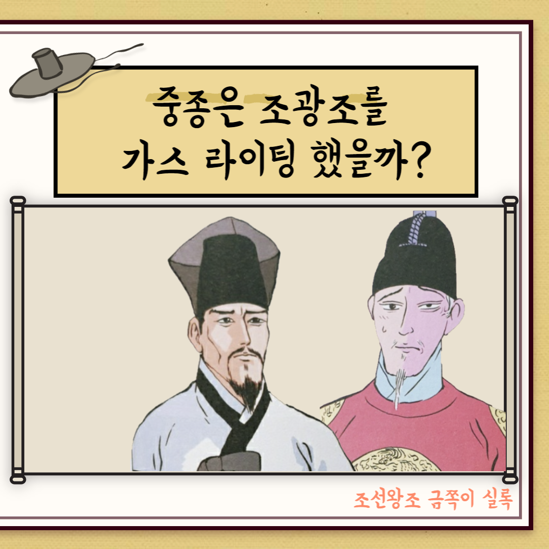 조광조가 신경 쓰였던 중종은 결국 '주초위왕' 나뭇잎 사건의 재구성을 명분 삼아 그에게 사약을 내렸으며, 불철주야 조선의 개혁과 중종을 위해 노력했던 그는 '절명시'를 남기고 세상을 떠났다. 그 역시 중종에게 가스 라이팅 당했을지도 모르겠다. 그런 상황에도 충정을 노래하다니...!