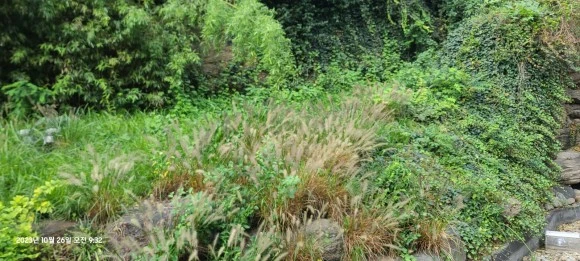 건들바위공원을 지나면 목향장미로 유명한 카페가 높이 자리하고 그 아래에 은목서 화분이 몇 개 놓여있다. 길이 아주 넓지도 깨끗하지도 않지만 향기로 모든 걸 제압한다.