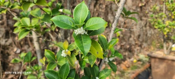 화분에 자라 목마름과 추위를 그대로 느낄 테지만 가을이면 어김없이 향기를 전해주는 은목서.