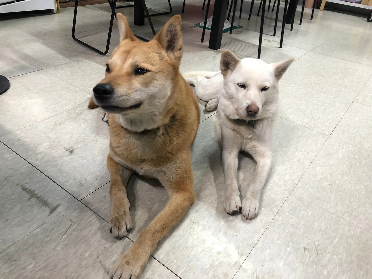 “참 우리 사무실에 상주하는 진돗개가 두 마리 있어. 동해랑 서해라고. 혹시 털 알레르기 있나 해서.”
