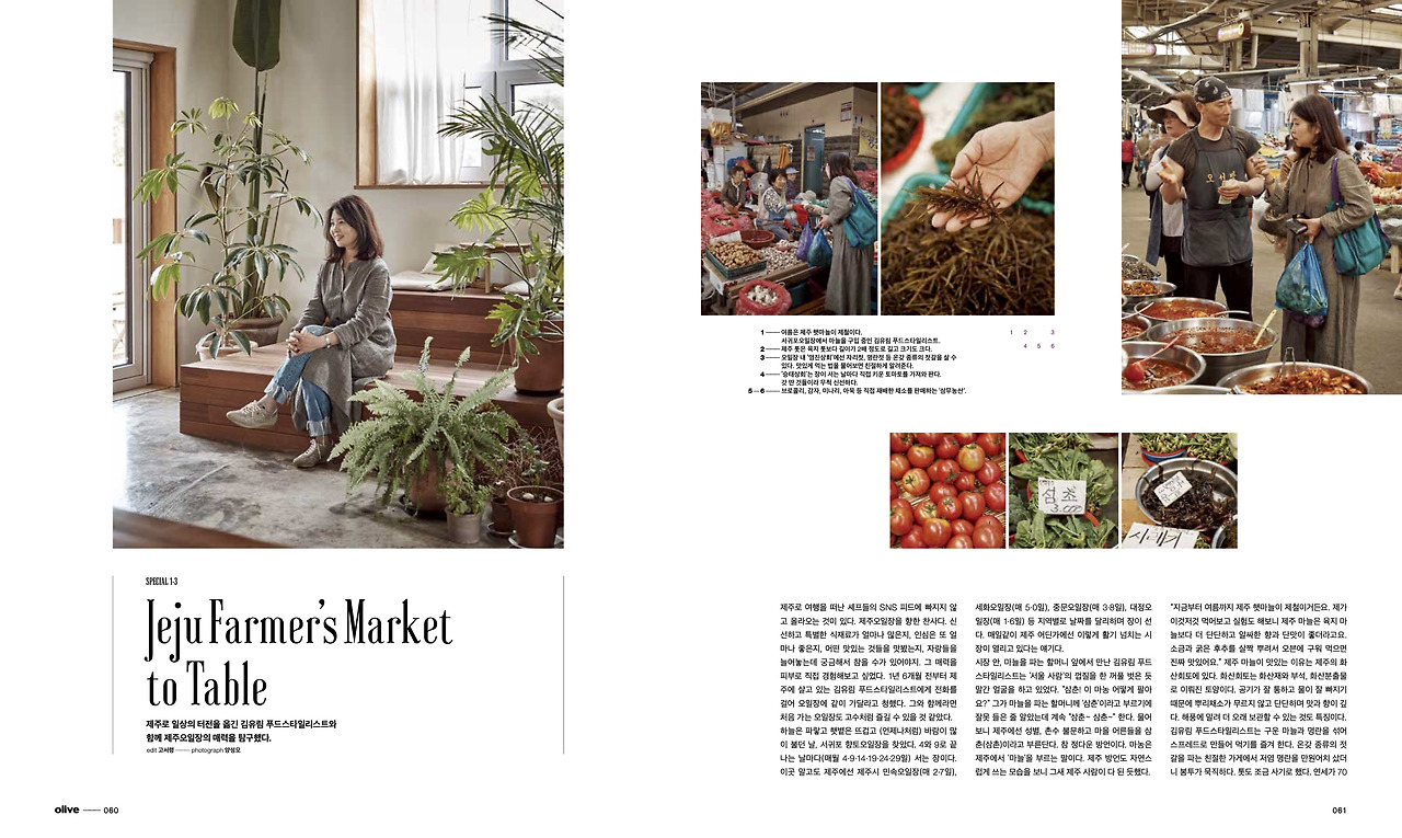 “미식 여행 콘셉트잖아요. 여행자의 시선으로 오일장에 가보지 않은 사람에게 제주 오일장에 가면 어떤 식재료들을 접할 수 있고, 분위기는 어떤지 전달해 주는 역할이라고 생각하고 작성했거든요. 어쨌든 쉽게 와닿고 잘 읽힐 수 있는 수준의 글이어야 하잖아요.”