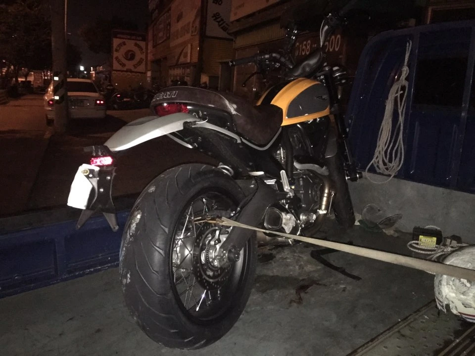 당시 푸조를 수입하던 한불모터스에서 매달 한 꼭지씩 롱텀 시승기 형태로 실어달라며 <모터매거진>에 제공했던 2008과 3008 소형 SUV를 매일 타고 다녔다. 시승차도 출근길에 반납하려면 집으로 타고 가야 했으니 자차의 필요성은 느끼지 못했다. 1년 전 잡지 광고로 처음 봤던 ‘두카티 스크램블러’라는 모델의 이미지가 기억 한구석에서 떠올랐다. 쇠뿔도 단김에 빼라고 했다. 주말에 시간을 쥐어짜 신사동 인근 도산대로에 위치했던 두카티 매장을 찾았다. 스크램블러 라인업 중에서도 ‘클래식’ 모델에 유독 눈길이 가서 살피고 있었다. 옆에 있던 딜러가 갑자기 비장의 멘트를 꺼내 들었다. “재고가 있어서 지금 계약하시면 3일 뒤면 출고하실 수 있습니다.”