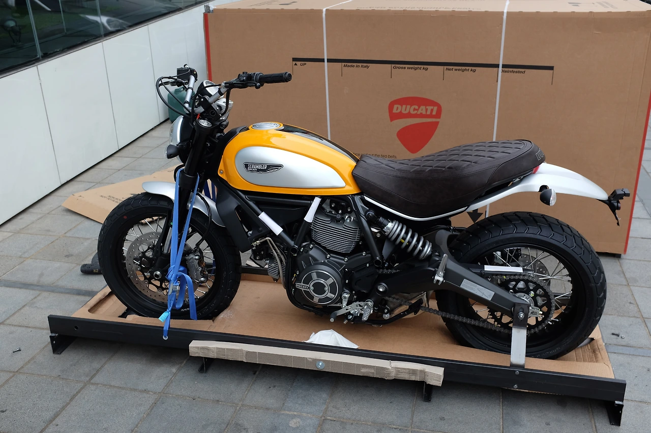 배기량 803cc, 공랭식 2 기통 73마력 엔진, 그리고 스포크 휠과 갈색 가죽 시트로 방점을 찍는 클래식한 디자인. 무엇보다 일제 오토바이와는 결이 다른 멋으로 학창 시절 그토록 마음을 설레게 했던 두카티라는 이탈리아 브랜드. 팔랑귀는 아니었지만 딜러의 필살기까지 더해졌으니 더할 나위 없었다. 할부 진행을 어떻게 하는지도 몰랐지만 덜컥 계약금부터 카드로 긁었다. 매뉴얼 오토바이를 운전할 순 있었지만 아직 자격은 부족해서 시간을 쪼개 부지런히 2종 소형 면허를 취득했다. 내 인생 첫 번째 오토바이, 1,550만 원짜리 두카티 스크램블러 클래식의 ‘박스를 깠다’. 계획에도 없던 새로운 장난감이 손에 들어왔다.