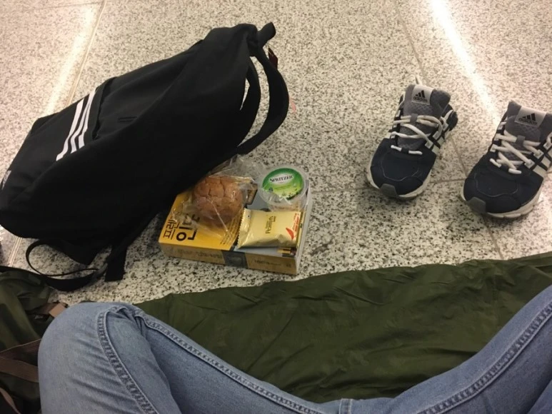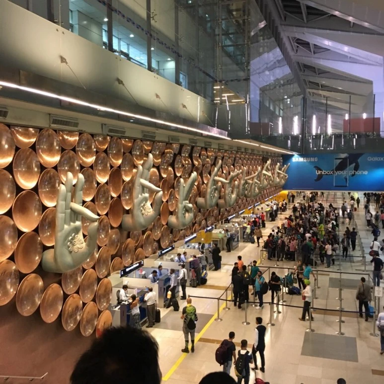 우선 밤 비행기로 도착했기 때문에 날이 밝을 때까지 공항 노숙을 하기로 했다. 인도 공항은 무장한 가드(경찰 및 군인)가 있고 들어오려면 가드에게 항공권을 보여줘야 할 정도로 보안이 철저하다. 그래서 잡상인이나 노숙자 혹은 위험해 보이는 사람은 함부로 들어오지 못한다. 오히려 공항을 이용하려는 사람조차 공항을 한번 나가면 쉽게 들어오지 못하기 때문에 이를 주의해야 한다.