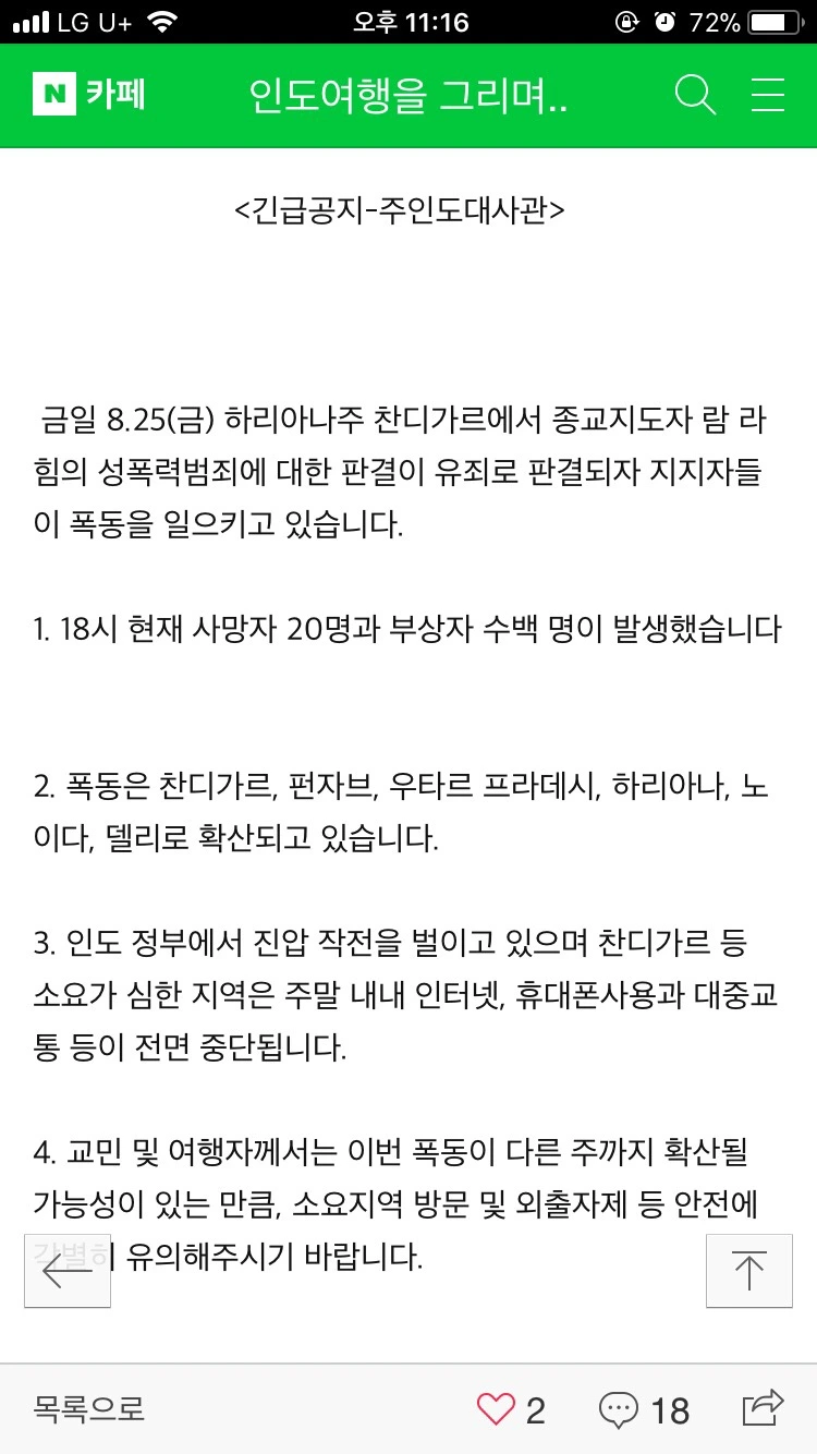 인디라 간디 국제공항에 발을 딛자마자 외교부에서 도착한 문자 중에는 이런 게 와 있었다.