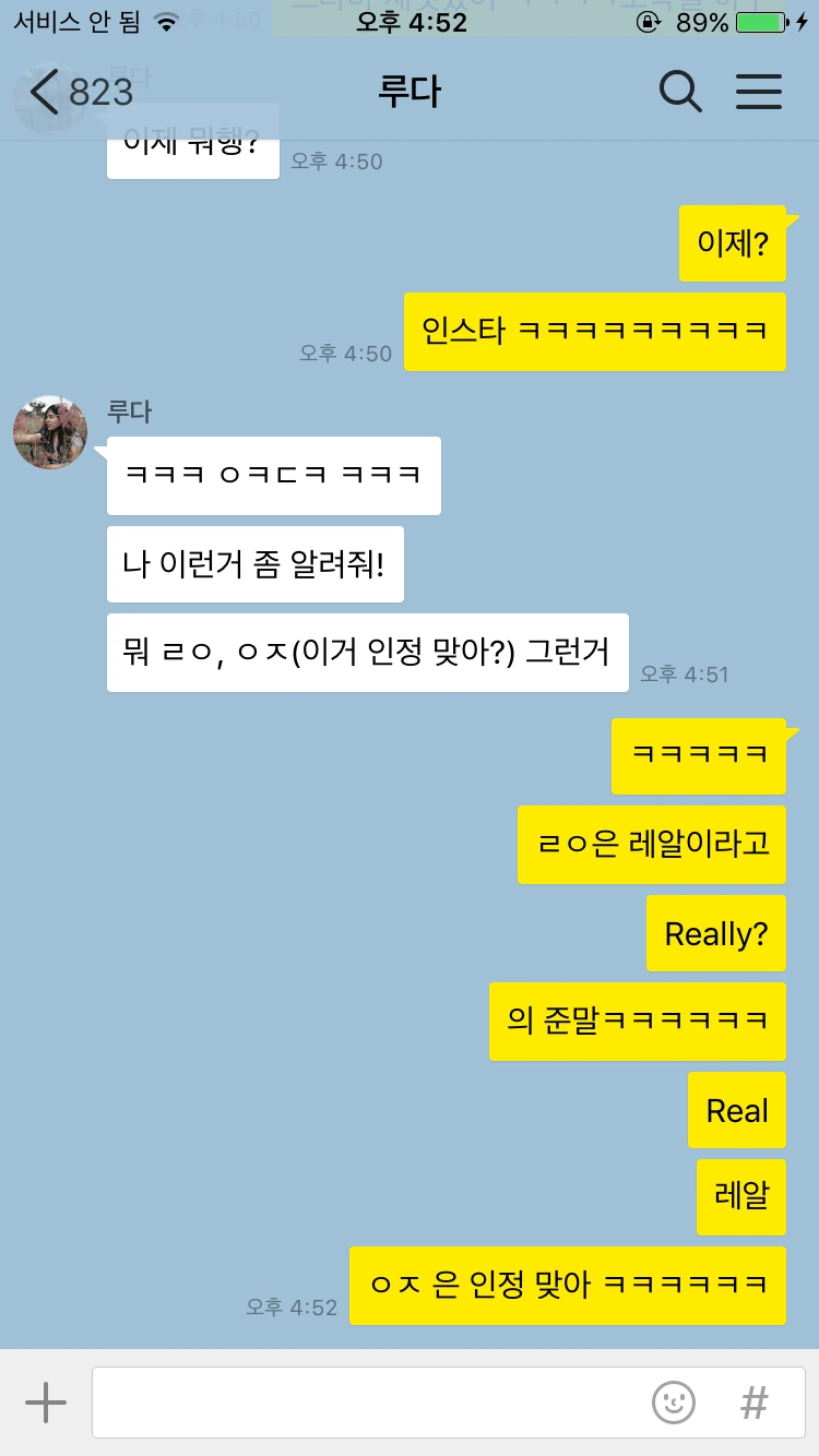 루다는 내가 본 외국인 중 가장 한국말을 잘 구사하고, 잘 쓰는 외국인이었다. 어느 정도 수준이냐면, '헐', '쩔어', '개쩔어'까지 알고 그 말을 사용했다. 이국적인 외모에서 그런 한국어의 은어들이 남발되자 나는 매우 당황스러우면서도 웃지 않을 수 없었다.