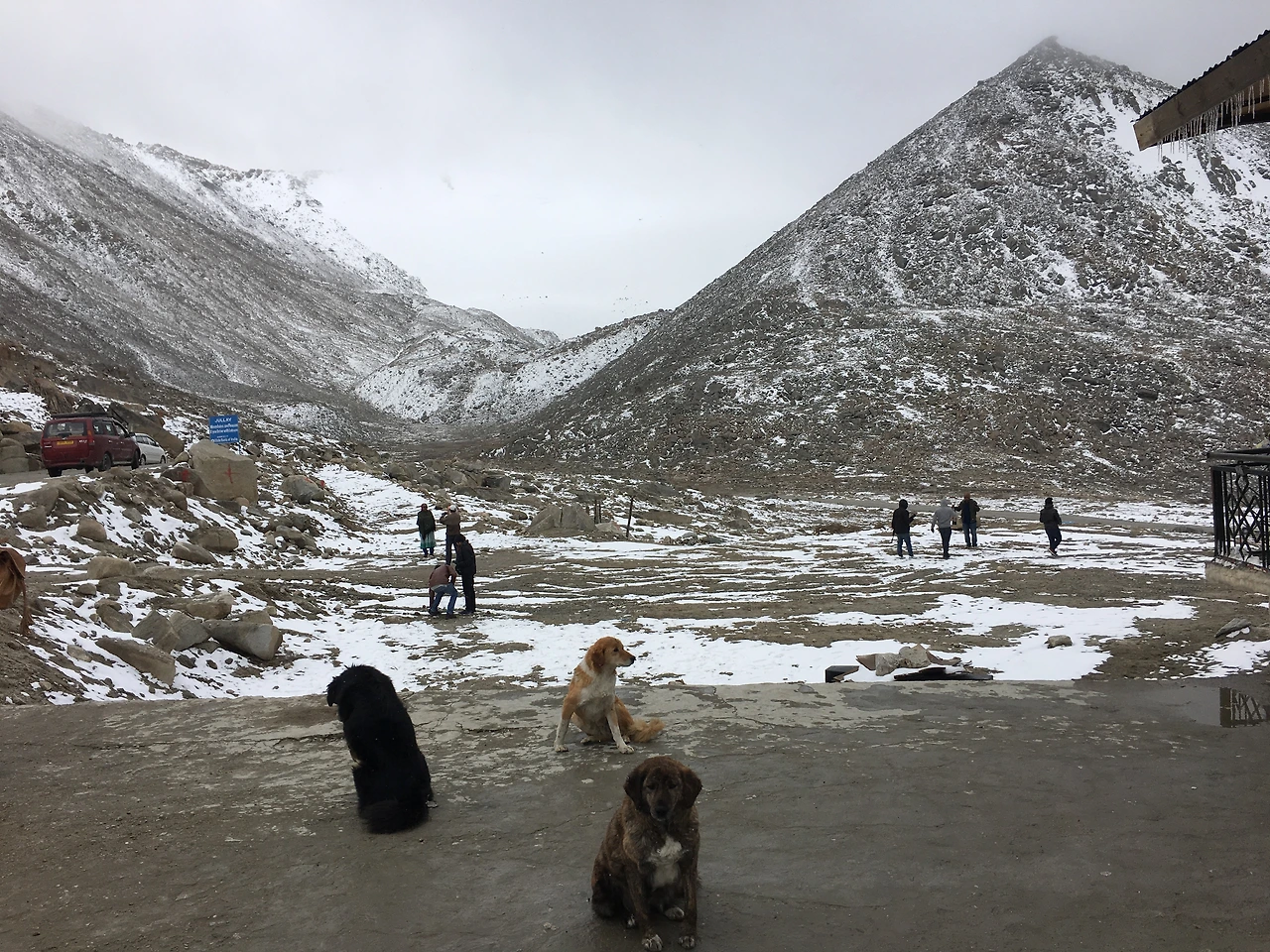 세계에서 제일 높은 자동차 도로, 창라 고개를 지날 때는 공기가 차가워 눈이 녹지 않아 있었고 오들오들 손발이 떨렸다. 따뜻한 짜이를 겨우 사서 마시자 조금 진정이 되는 듯했다. 이곳 휴게소의 화장실은 가지 않았는데 들은 바에 의하면 한쪽이 벼랑으로 뚫려있다는 말에 겁이 나 오줌을 참았다. 이렇게 가는 길이 어려운 걸 진즉에 알았더라면 난 가지 않았을지도 모른다. 그러나 어쩌겠는가. 이미 내 몸은 판공초를 가는 차를 타고 있는 것을.