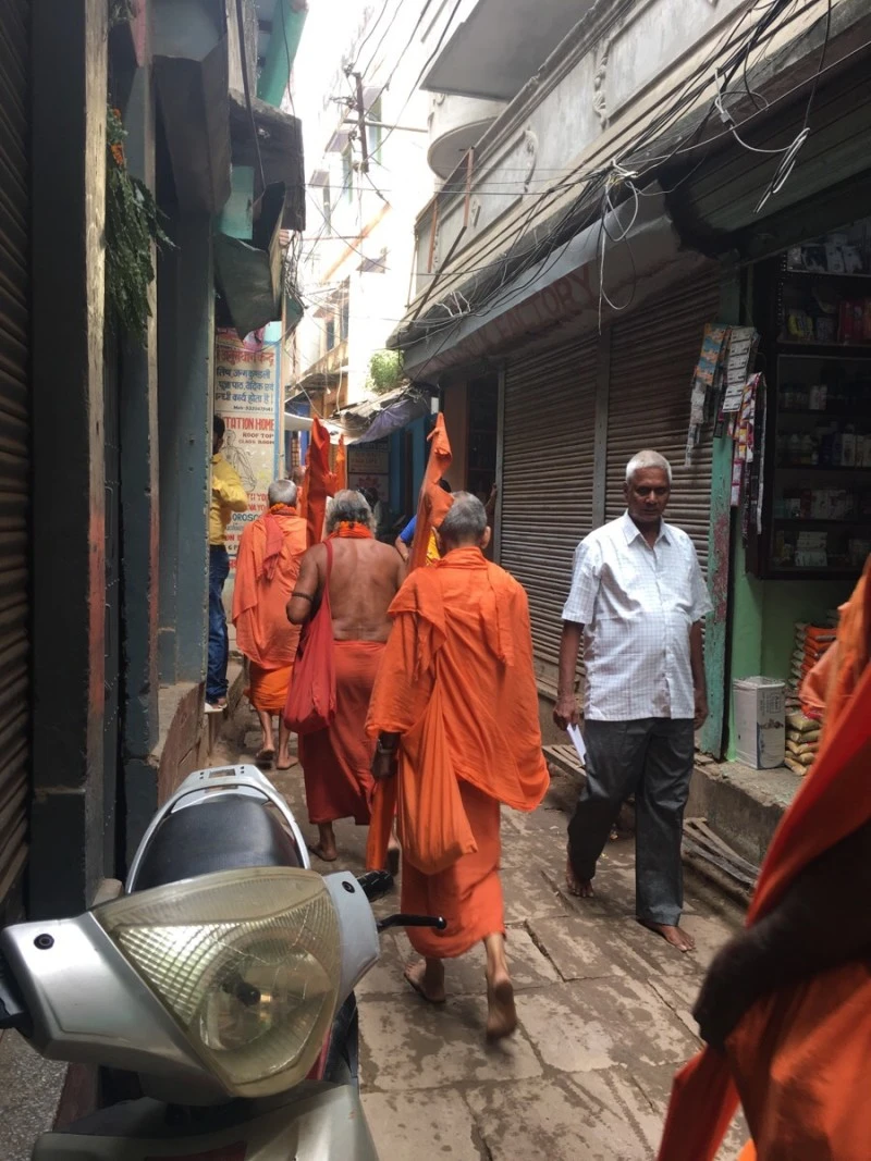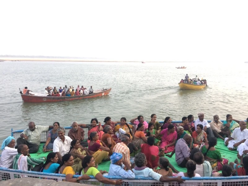 다른 한쪽에는 수많은 보트와 거기에 탄 수많은 사람들이 있다. 피부색과 착장을 보니 남인도에서 온 관광객들로 보인다. 아마 이들은 일생일대 바라나시를 가기 위해 벼르고 날을 잡아 온 사람들.