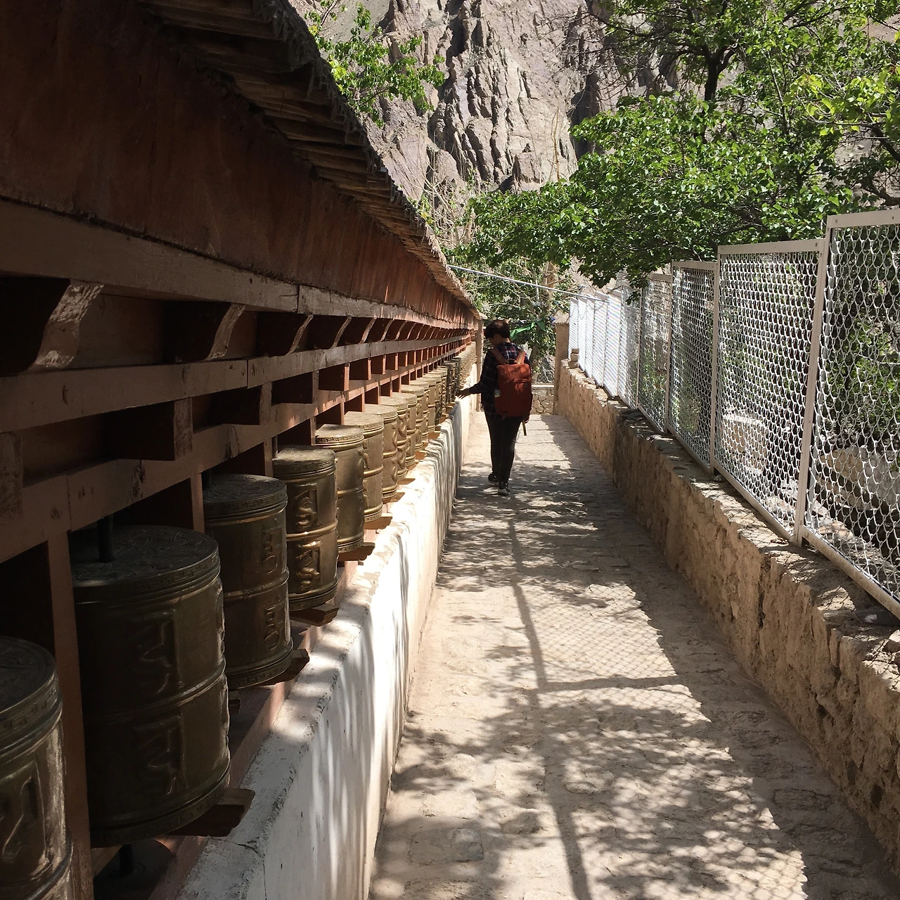 사원을 구경하고 나와서 수십 개의 마니차가 놓여있는 길을 따라가니 인더스 강이 있다는 표지판이 있었다. 인더스 강? 인도 북부를 지나는 두 강, 그 갠지스와 인더스? 두 강을 세트로 세계사 시간에 암기하듯 중얼중얼거린 게 기억이 났다. 인도 여행하면 갠지스 강이었고 갠지스는 앞으로 갈 예정이라 잘 알고 있었는데 세트로 늘 항상 함께 외웠던 인더스를 완전히 잊고 있었다.