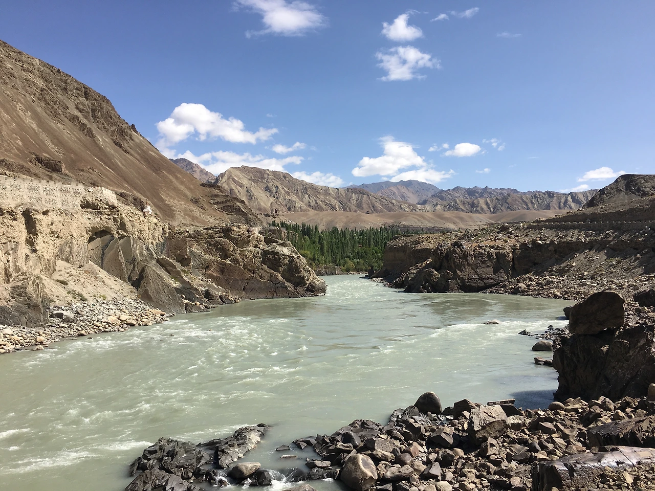 난데없이 출현한 인더스 강은 반가우면서도 낯설었다. 들뜬 마음에 인더스 강 앞에서 여러 장의 사진을 남겼다.